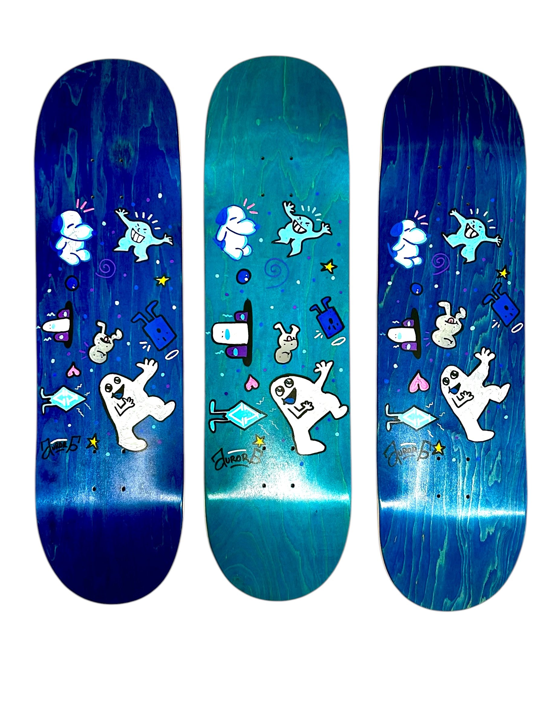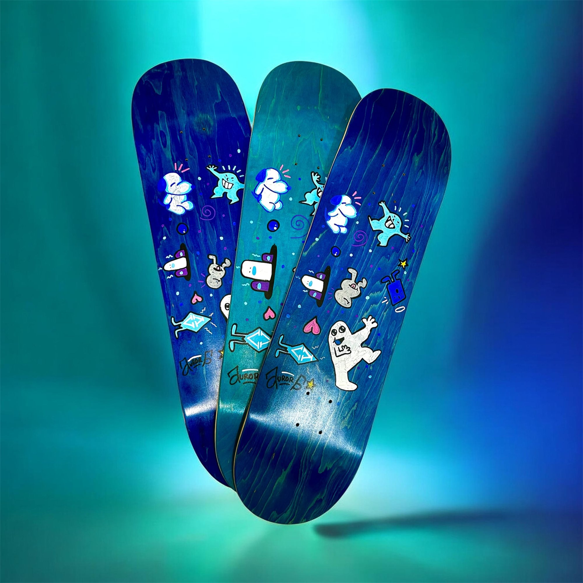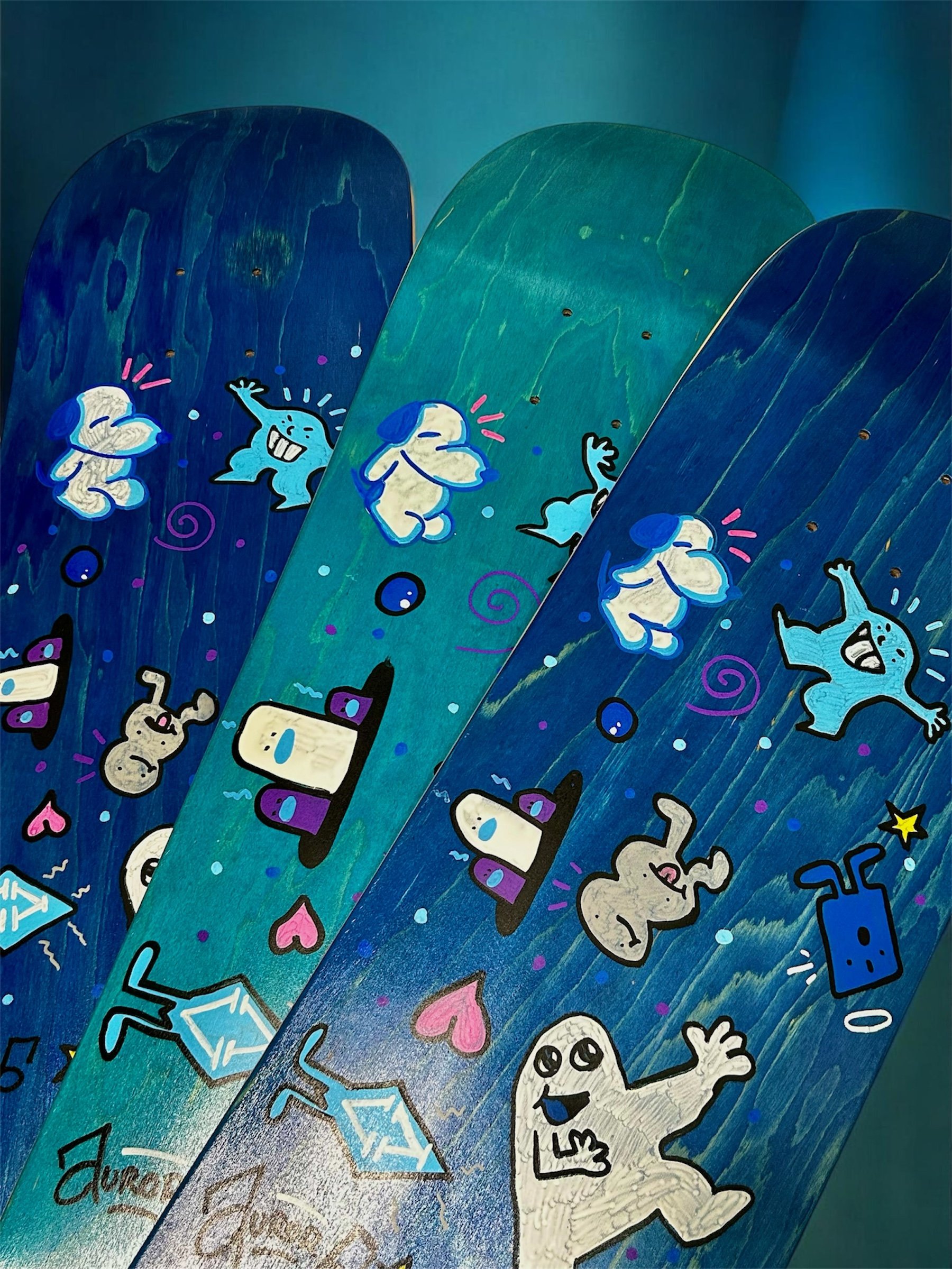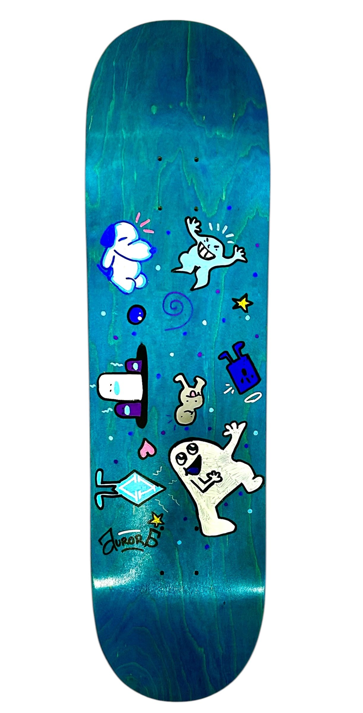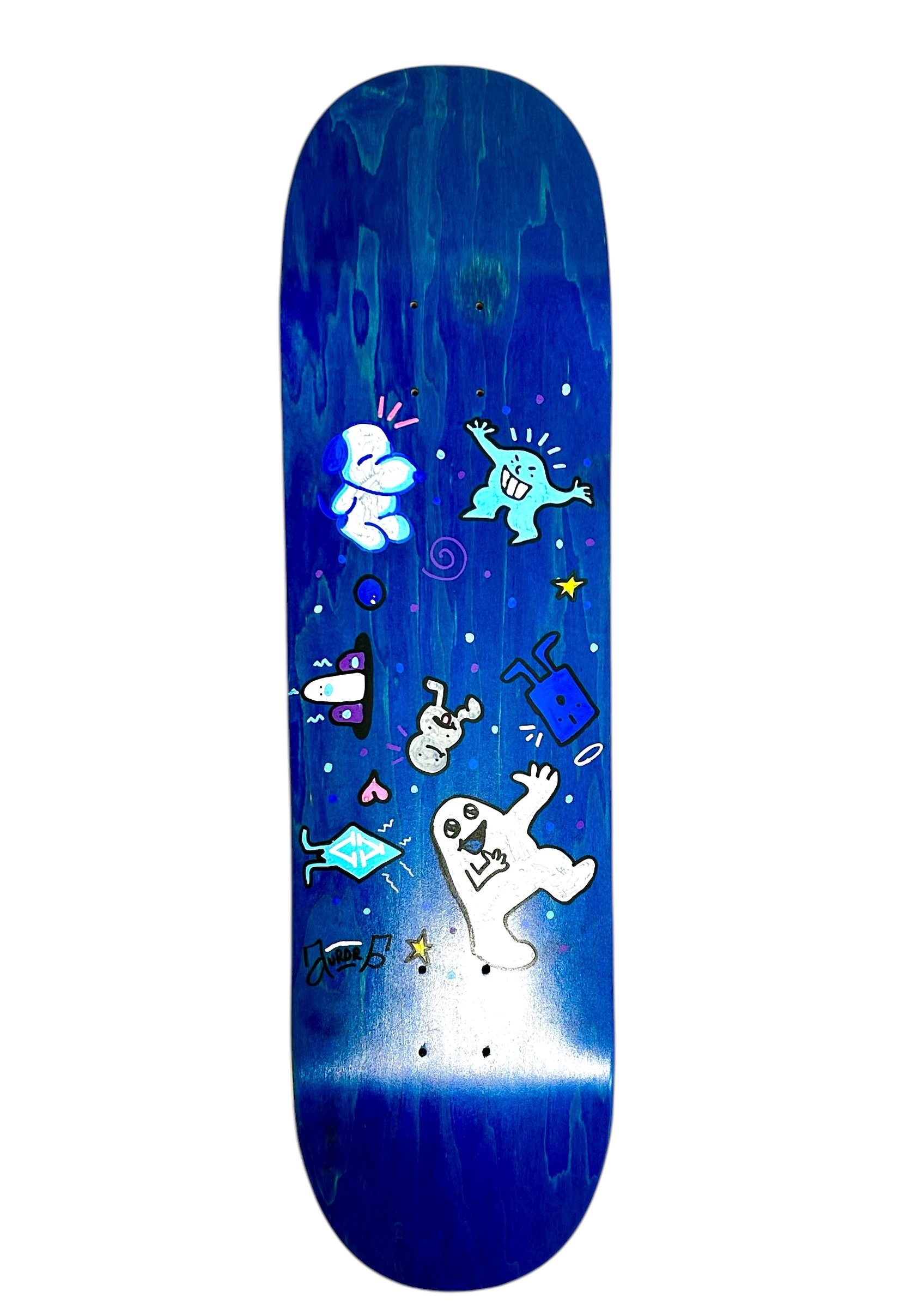 This graphic captures a sense of unstructured joy, looking like a page from a sketchbook brought to life on a deck. Turning a doodle into reality.